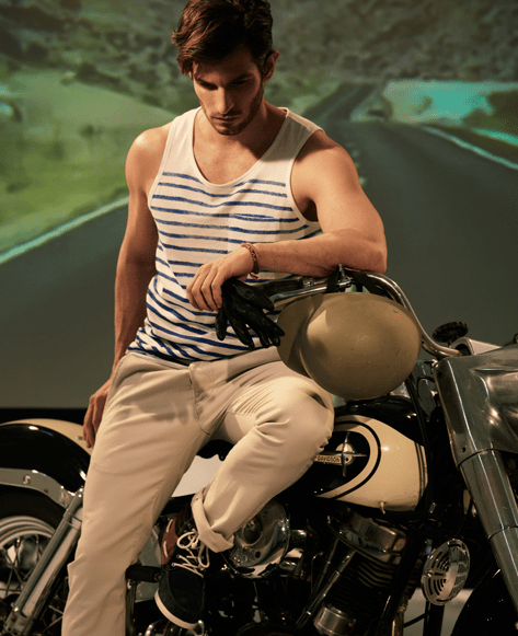 La colección tiene mucha tendencia motera, mucho blanco y negro, y cosas que se pueden combinar mucho. Es una colección básica, pero creo que es perfecta, y sí, que Quim sea el protagonista hace mucho.