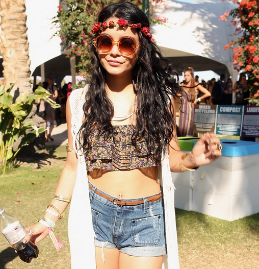 Hay que tener en cuenta que Coachella es una especie de pistoletazo de salida para nuestros festivales españoles, y que cada año nos fijamos en todos los estilismos para ver lo que será tendencia también en los festivales de España. Si hay una famosa a la que le gusten los festivales esa es Vanessa Hudgens y hoy me he quedado con ella de entre todas las que hemos visto por allí por su originalidad, y porque creo que todo lo que lleva lo lleva con mucha naturalidad, aunque no sean prendas excepcionales.