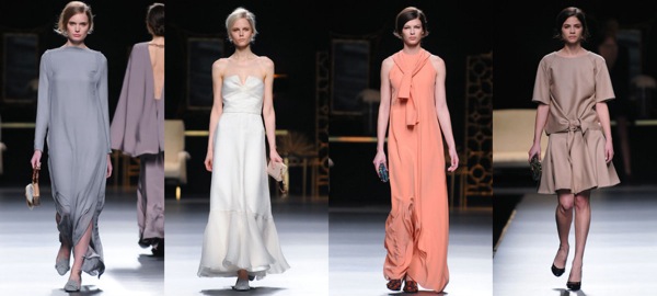 Juanjo Oliva nos dejó uno de los desfiles más elegantes de esta edición con su colección otoño-invierno 2013-14. Vestidos muy femeninos, tacón de 3 ó 4 centímetros que nos lleva a los años cincuenta. Cinturones con eslabones y glamourosas estolas daban ese toque de elegancia clásica al que Juanjo Oliva nos tiene habituados y que él sabe hacer moderno a la vez. También hemos visto capas, y en contraposición, grandes escotes en la espalda de las modelos.