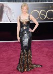 Nicole Kidman, como siempre, buscó un nivel superior de elegancia con su vestido de lentejuelas de L’Wren Scott. Brilló en un negro y oro ajustado a su silueta. En el escote de corte cuadrado del vestido llamaban la atención los pendientes de Fred Leighton, y el corte de sirena de la parte inferior hipnotizaban por completo.