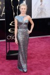 Naomi Watts optó por un vestido personalizado de Giorgio Armani Prive de plata y lentejuelas de lo más sexy, con un corte asimétrico que cubría un solo hombro. El vestido pedía accesorios mínimos, y Naomi llevó un llamativo brazalete, anillo de cóctel, y pendientes de diamantes.