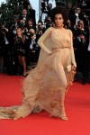 Solange Knowles llevó un Stephane Roland con plumas, un vestido color caramelo que con las joyas Chopard y los labios anaranjados parecía perder su fuerza, igual que con ese diminuto cinturón.