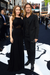 La pareja de guapos vestían de negro para la ocasión. Esta vez todos los flashes eran para Angelina, y dejadme decir que estaba preciosa. Lució un vestido negro de Saint Laurent drapeado con paneles transparentes, corpiño ajustado, espalda abierta y falda larga con vuelo y tul.Complementó el look con dos brazaletes de oro en cada muñeca.