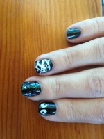 Como veis en las fotos yo he pintado tres uñas diferentes, una momia, una con brillantina y una con ojos.