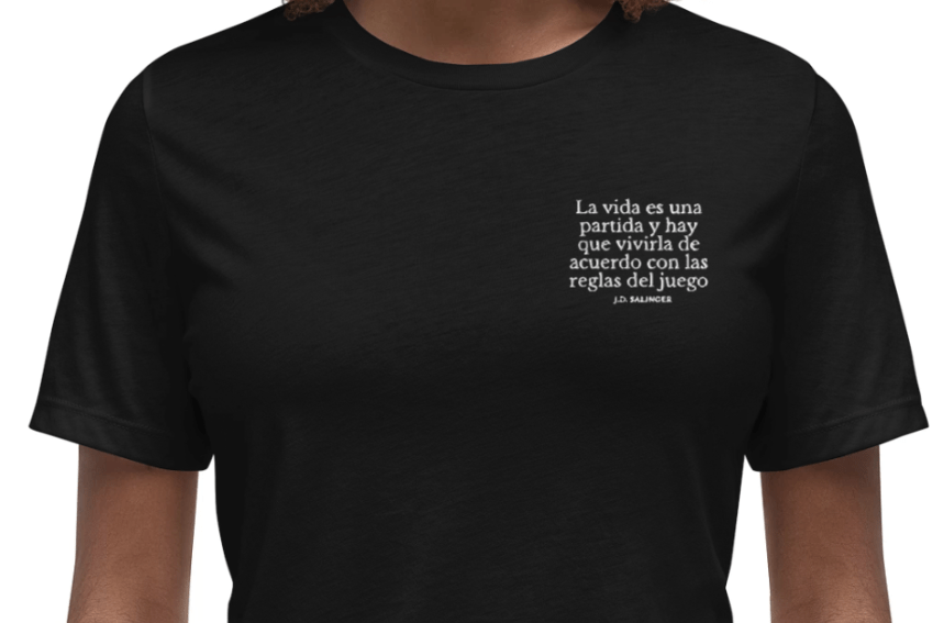 Inventando ando. Así, tal cual. Como es verano y tengo más tiempo libre me paso el día creando, pensando cosas que hacer. Hoy me ha dado por ponerme a mirar camisetas personalizables y se me ha venido a la cabeza una idea brillante. Bueno, tal vez la idea existe, pero no pasa nada. He pensado: «¿Y si me hago una camiseta con alguna frase de un escritor?» Porque ya tengo una de Sputnik mi amor, de Murakami, pero esa no es única, la compré en una tienda y hay muchas por ahí. Y así, entre unas cosas y otras, he llegado a una web y me he puesto a crear camisetas online con Printful.