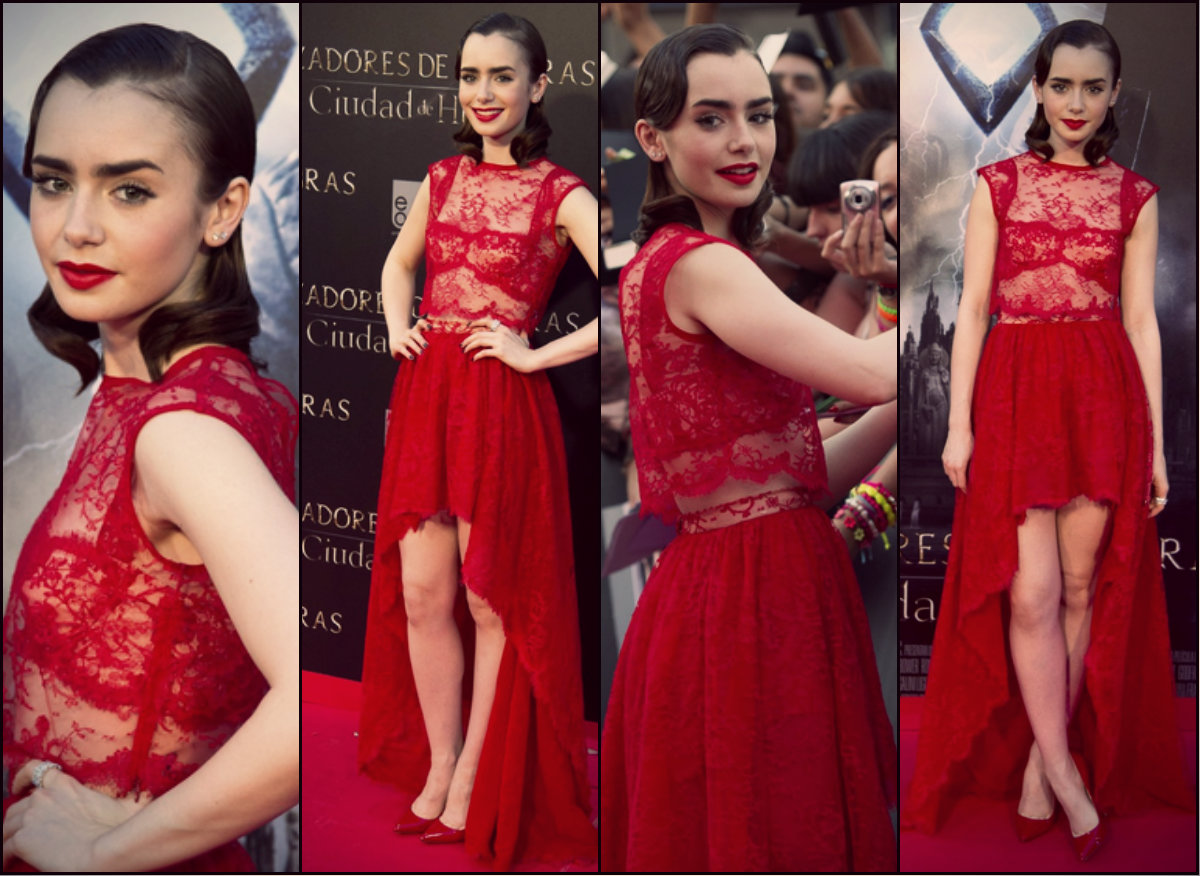 Lily Collins Madrid Cazadores de sombras vestido rojo