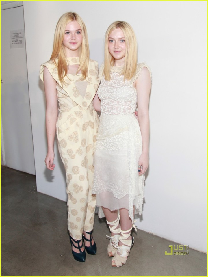 NEW YORK, NY – SEPTEMBER 13: Actresses Elle Fanning and Dakota Fanning attend the Rodarte Spring 2012 fashion show at Pace Gallery during Mercedes-Benz Fashion Week on September 13, 2011 in New York City. (Photo by Charles Eshelman/Getty Images)