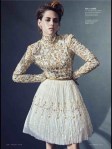 Mi relación con la moda es por defecto, porque como actriz tienes que caminar por Alfombras Rojas, y desde muy joven he hecho eso. Conocí a Nicolas Ghesquière en una sesión que hice en Montauk. Esa fue mi primera introducción en la inspiración relacionada con moda. Hasta ese momento para mí toda la inspiración de moda sólo había estado relacionada con actores y directores. Con Nicolas todo era revelador. Fue un «Oh Dios mío, lo entiendo perfectamente.» Supe que había encontrado algo que me atraía. Antes para mí era sólo una molestia el tener que llevar estos zapatos de tacón y, tratar de satisfacer a las personas que querían hablar sobre los tacones. Pero desde Nicolás fue como: «Esto es fresco y artístico y divertido, y, básicamente, una cosa genial que hacer.» Ese despertar fue muy emocionante…